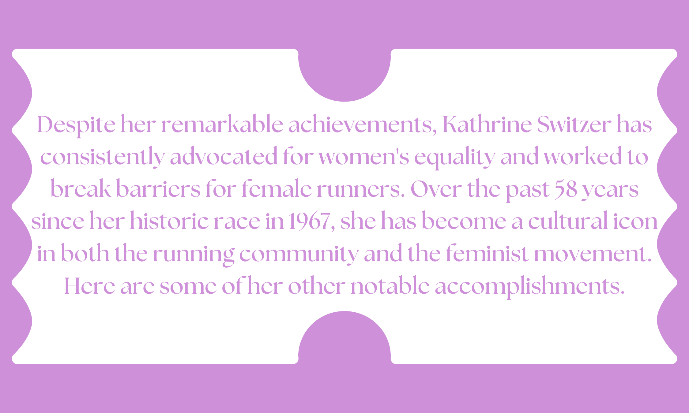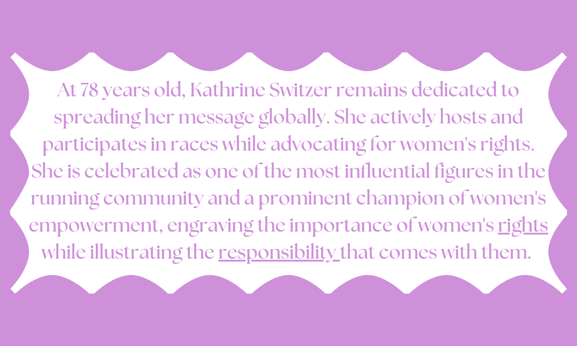 "Kathrine Switzer returns to run the Boston Marathon, 50 years after her original appearance in 1967" April 17th, 2017, Elise Amendola