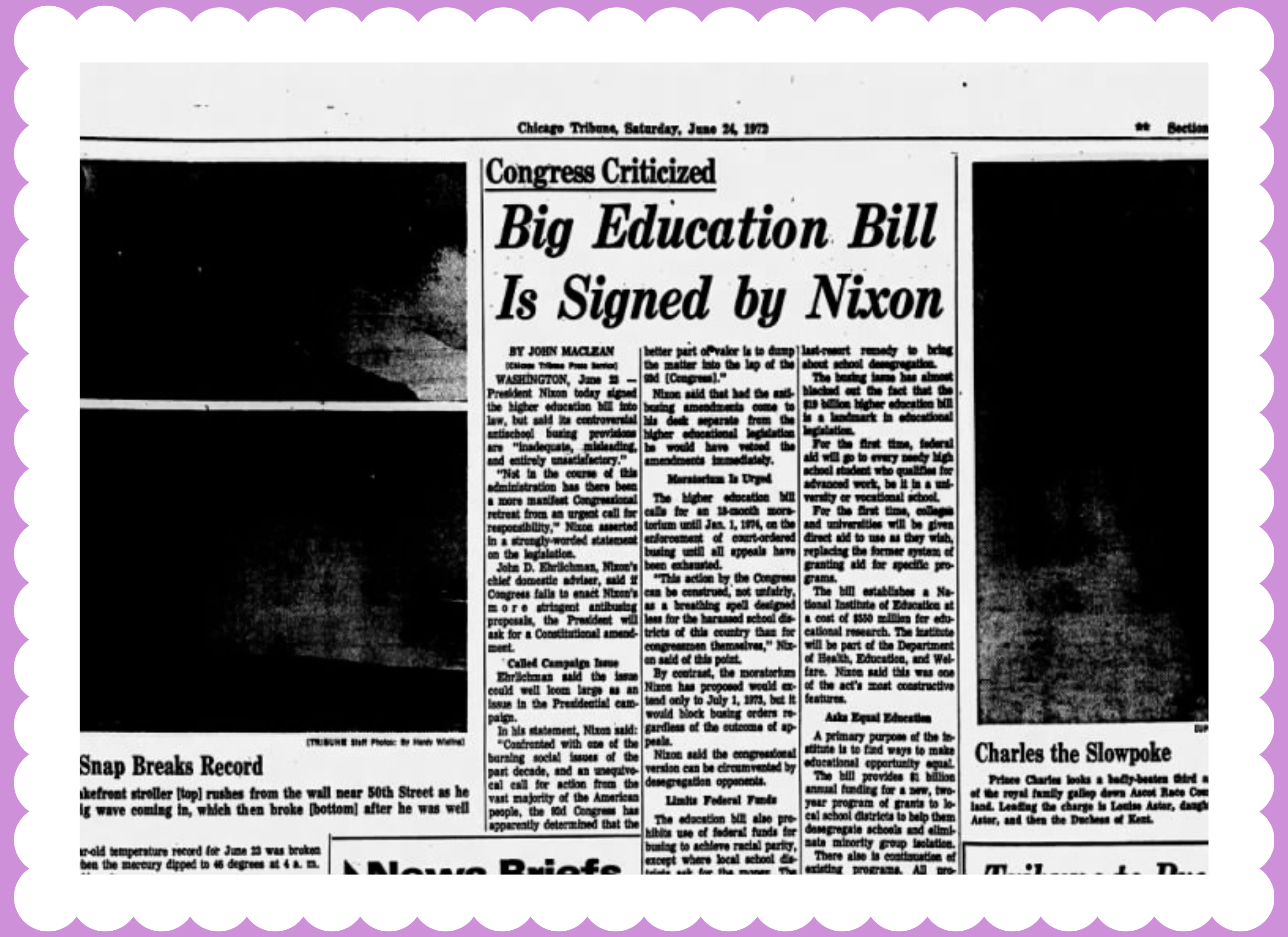 "Excerpt from the Chicago Tribune" June 24th, 1972, Chicago Tribune